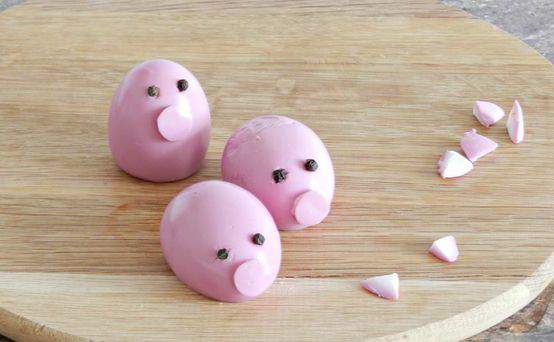 8. Срезанные фрагменты яиц можно использовать с пользой, вырезав из них «пятачки» и «ушки» с помощью любых подручных средств.