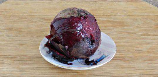 2. Свёклу среднего размера вымойте, отварите до готовности. Дайте корнеплоду остыть при комнатной температуре и очистите от кожуры.