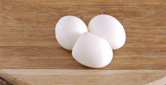 3. Яйца отварите вкрутую (в течение 10 минут), остудите в холодной воде и очистите от скорлупы.