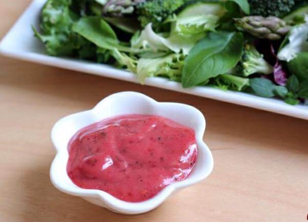 5.Малиновый соус винегрет может использоваться для самых разнообразных салатов. Предлагаем некоторые идеи использования его в салатах с наборами ингредиентов: