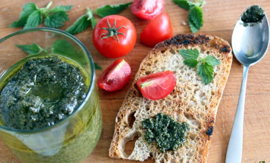 6. Соус песто из крапивы имеет отличный вкус. В нем чувствуются поджаренные грецкие орехи, и только после них – крапива, чеснок и сыр. Соус замечателен для заправки салатов, а также в дополнение к макаронам, овощам на гриле и бутербродам.