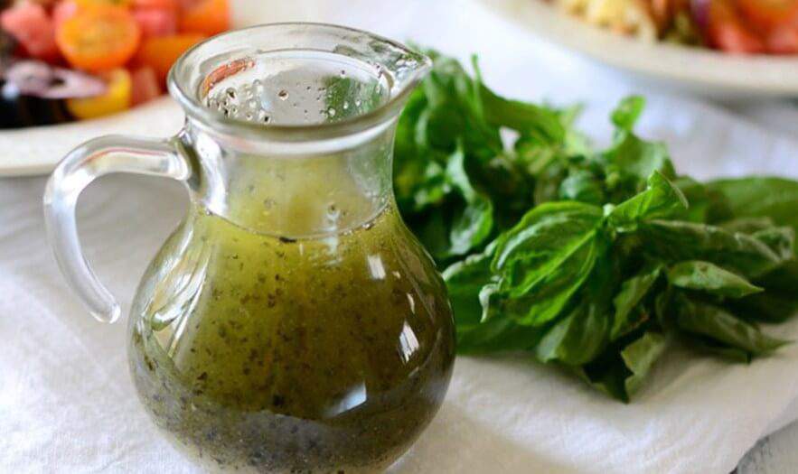 7. Приготовленной заправкой можете полить салат сразу перед подачей на стол, а также оставить впрок. Заправка может храниться в условиях холодильника несколько дней. Каждый раз перед использованием не забудьте хорошо взболтать заправку в баночке.