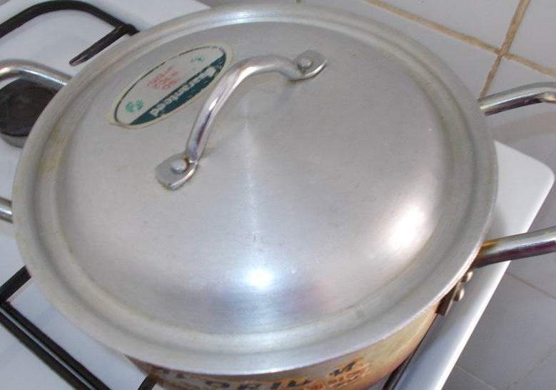 8. Влейте в кастрюлю необходимое количество воды. Удобно подливать воду из кувшина с носиком, но можно использовать и обычный стакан.