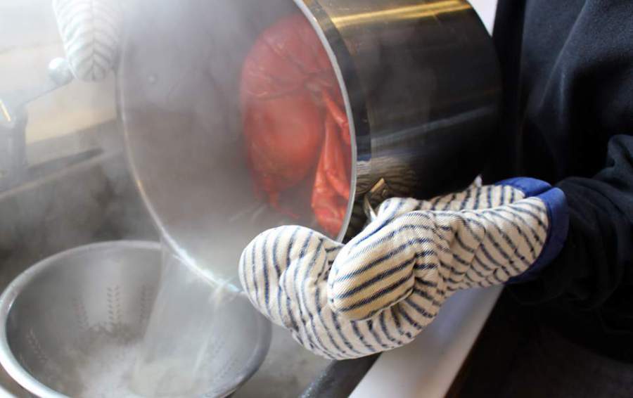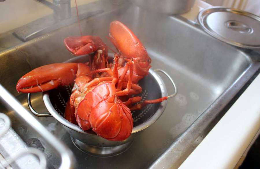 3. Оставьте тушку омара в дуршлаге, чтобы она полностью остыла.