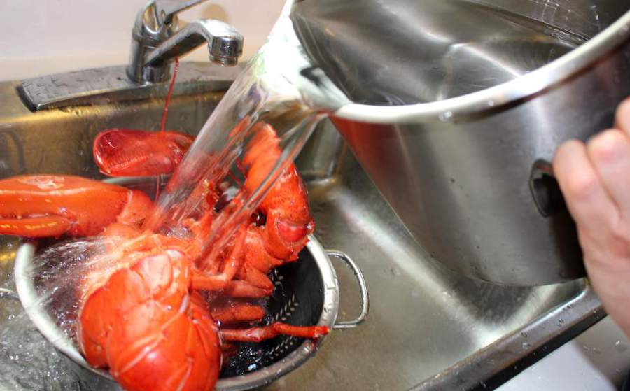 4. Чтобы омар быстрее остыл, можете полить его холодной водой.