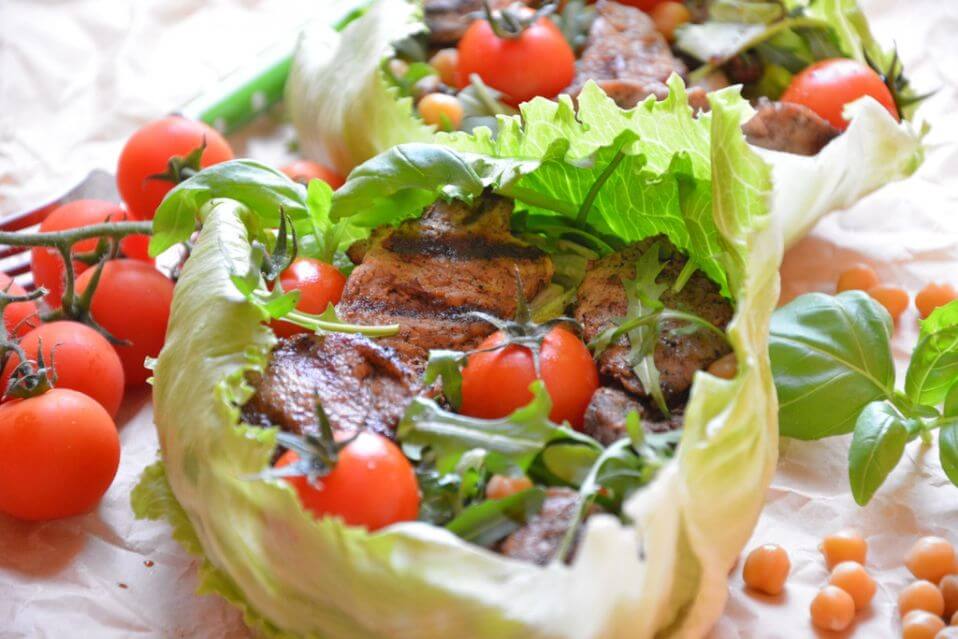 Если вы любите свинину и не прочь предлагать ее для гостей в оригинальных блюдах, рецепт салата из свиной вырезки с рукколой и нутом на салатных листьях заинтересует вас. Благодаря использованию листьев салата в качестве мисочек, блюдо будет замечательно выглядеть на праздничном столе и на пикнике.