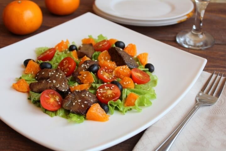 Если вы ищете идеи новенькой оригинальной закуски для праздничного стола, этот вариант салата заинтересует вас. Предлагаем вашему вниманию простой рецепт очень вкусного салата с куриной печенью и мандаринами, который готовится быстро, займет почетное место на праздничном столе и понравится гостям.