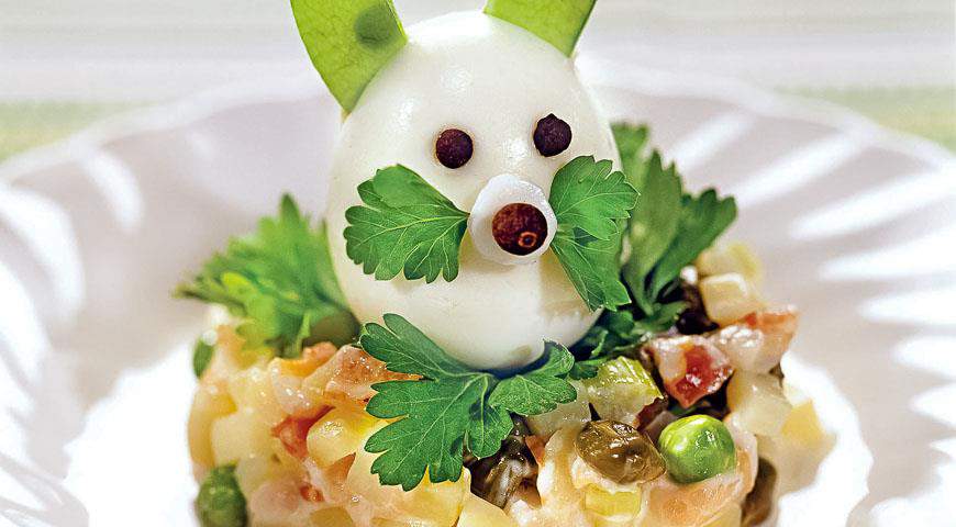 6. Детский картофельный салат «Зайчик» можно подавать к столу.