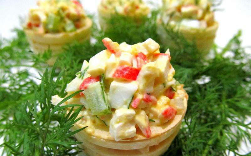 8. Салат из крабовых палочек в тарталетках готов, можно подавать к столу.