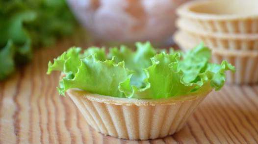 Впрочем, для салата в тарталетках лучше подобрать корзиночки из песочного теста, которые долго остаются хрустящими, не размокая. Такие корзиночки можно купить в магазине или приготовить собственноручно.