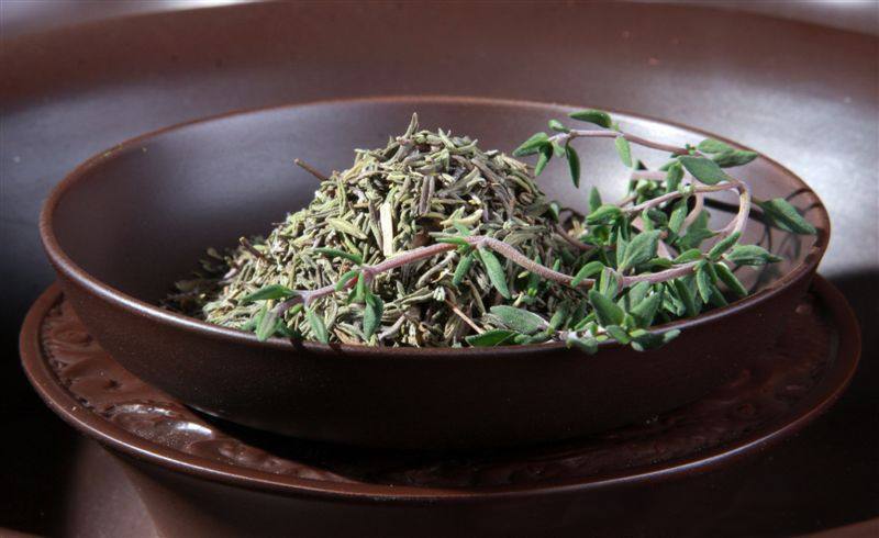 У сушеного тимьяна аромат обостряется и становится более насыщенным, поэтому сухая приправа из тимьяна предпочтительнее, чем свежие листья для приготовления пряных вторых блюд и закусок.