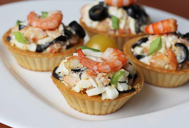 Готовим салат с креветками и перепелиными яйцами в тарталетках