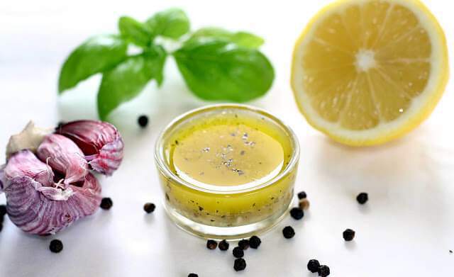 Готовим соус винегрет с лимонным соком и чесноком