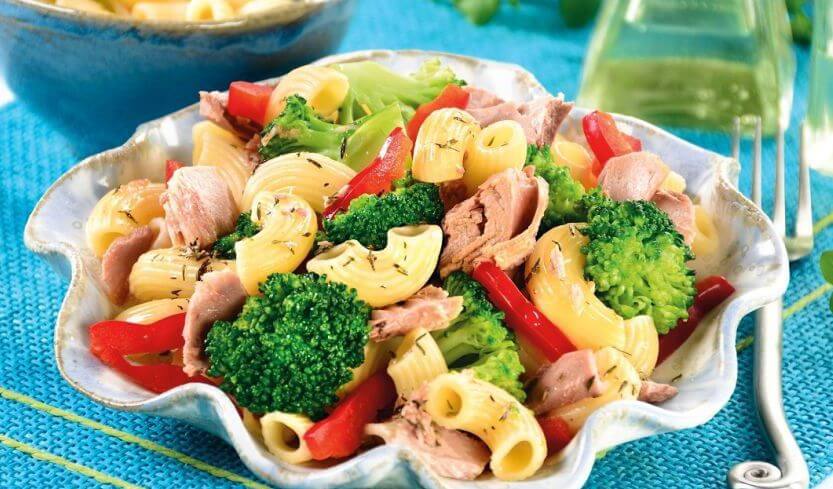 Салат из макарон с тунцом и брокколи