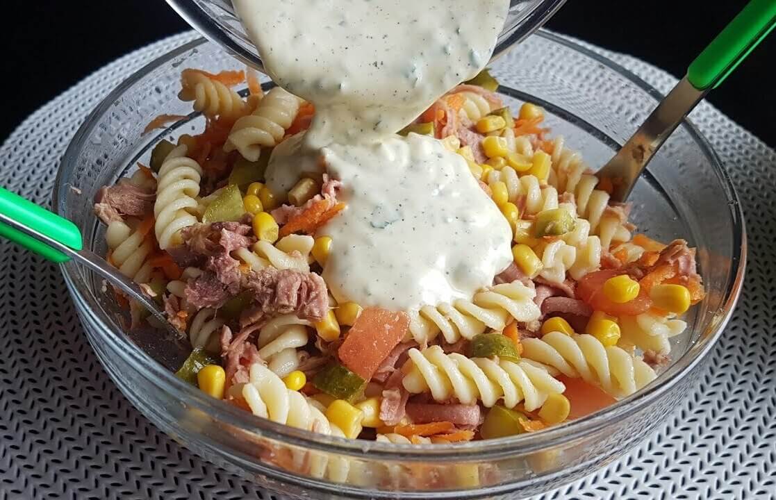 Досвідченим господиням відомо, що зі звичайнісіньких продуктів з додаванням кулінарної фантазії можна приготувати смачну поживну страву. А якщо є в кухонних засіках баночка тушкованого м’яса (тушенини), то й поготів. Пропонуємо до вашої уваги простий рецепт теплого салату з макаронами та тушениною.