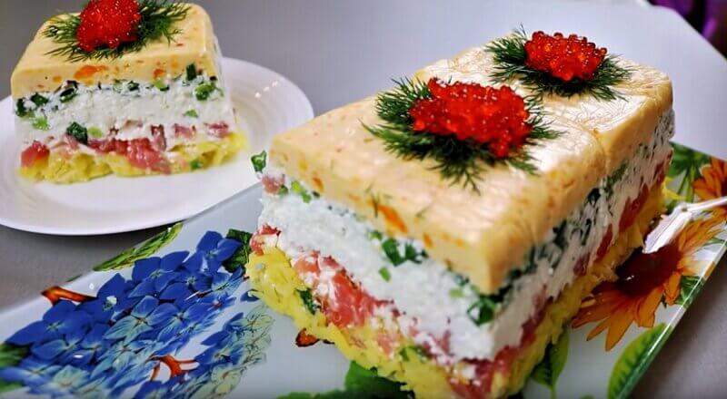 Готовим праздничный желейный салат с красной рыбой