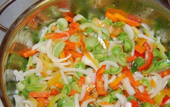 4. Высыпьте все подготовленные ингредиенты в одну тарелку.