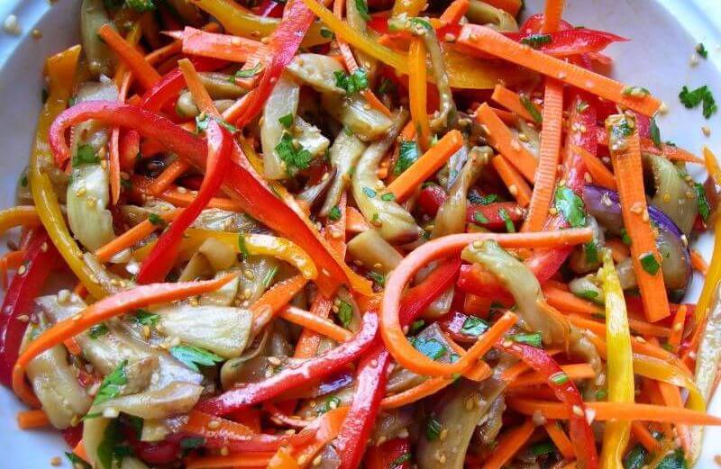 8. Салат из баклажанов по-корейски будет самым вкусным после настаивания в холодильнике в течение всей ночи.