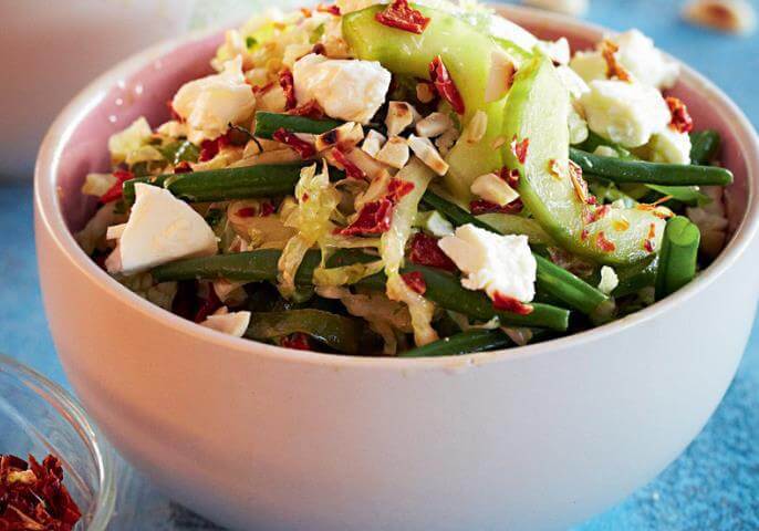 Готовим салат из зеленой фасоли с брынзой и овощами