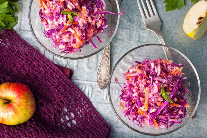 Готуємо салат із червоної капусти з м'ясом криля та яблуком