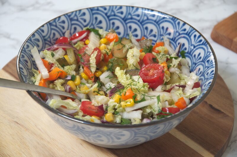 Готовим салат из пекинской капусты с маринованными огурцами и перцем