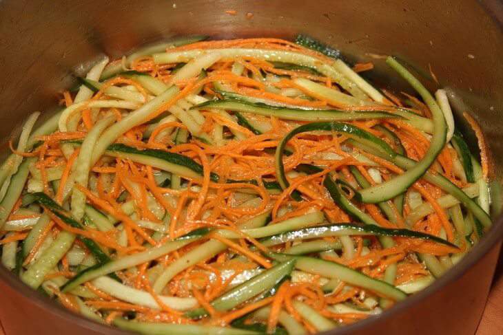 Готовим салат из моркови и огурца по-корейски