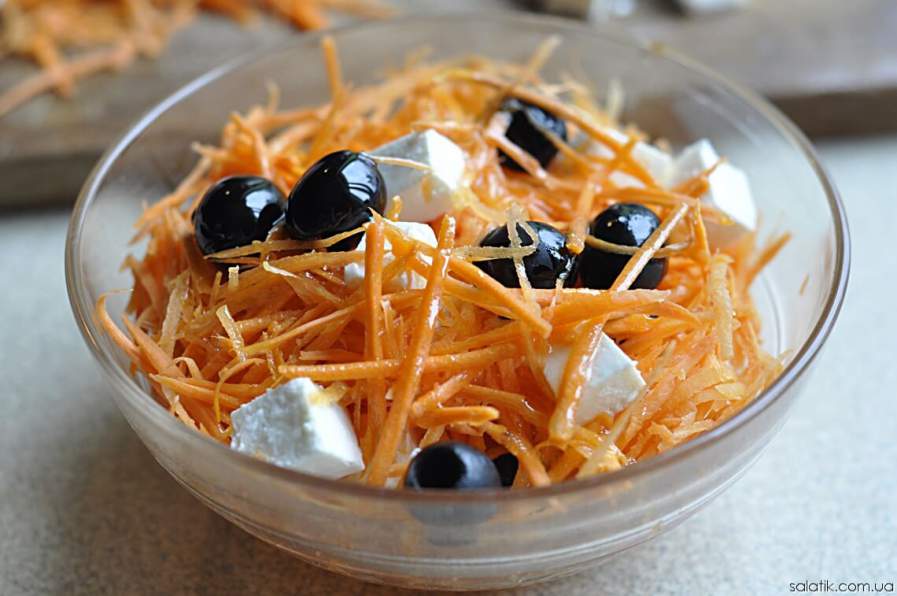 Морковь издавна зарекомендовала себя как универсальный овощ, пригодный для приготовления самых разных, закусочных и десертных блюд. И на праздничном столе морковь достойна красоваться не только в качестве корейской закуски. Предлагаем рецепт витаминного салата из моркови с сыром, оливками и тмином.