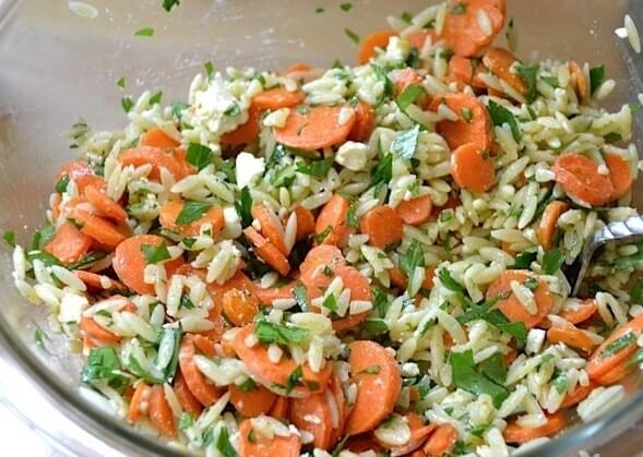 Готовим салат из запеченной моркови с мелкими макаронами и фетой