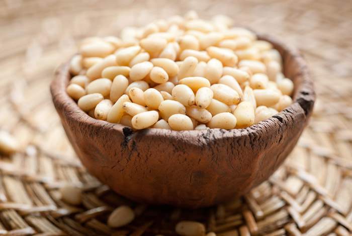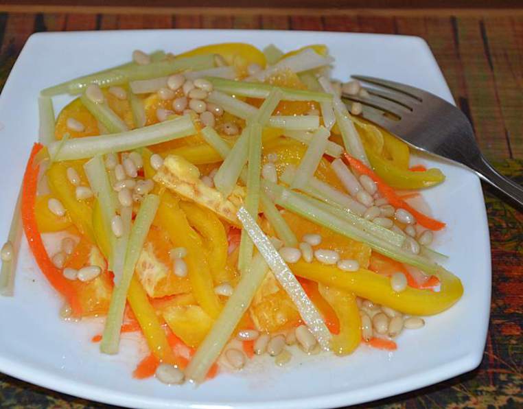 Кедровые орешки в качестве ингредиента сделают вкус салата богаче и насыщеннее. В них содержится огромное количество жирных кислот, белка и минералов. Все эти полезные вещества подарят вам заряд энергии, утолят чувство голода. Эти качества кедровых орешков особенно ценятся в постных блюдах.