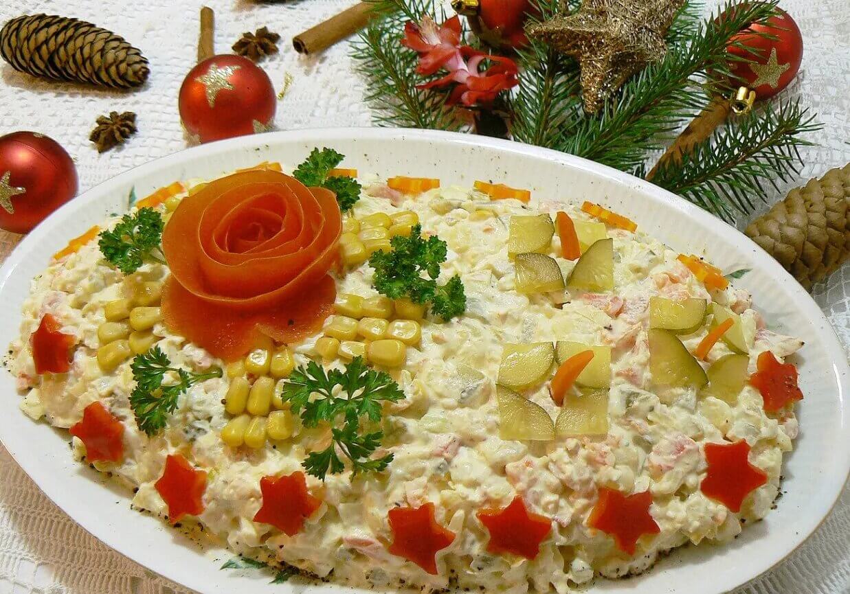 Праздничный овощной салат – сочный, аппетитный и нарядно оформленный, не содержит непривычных для употребления ингредиентов. Он будет настоящим украшением праздничного застолья.