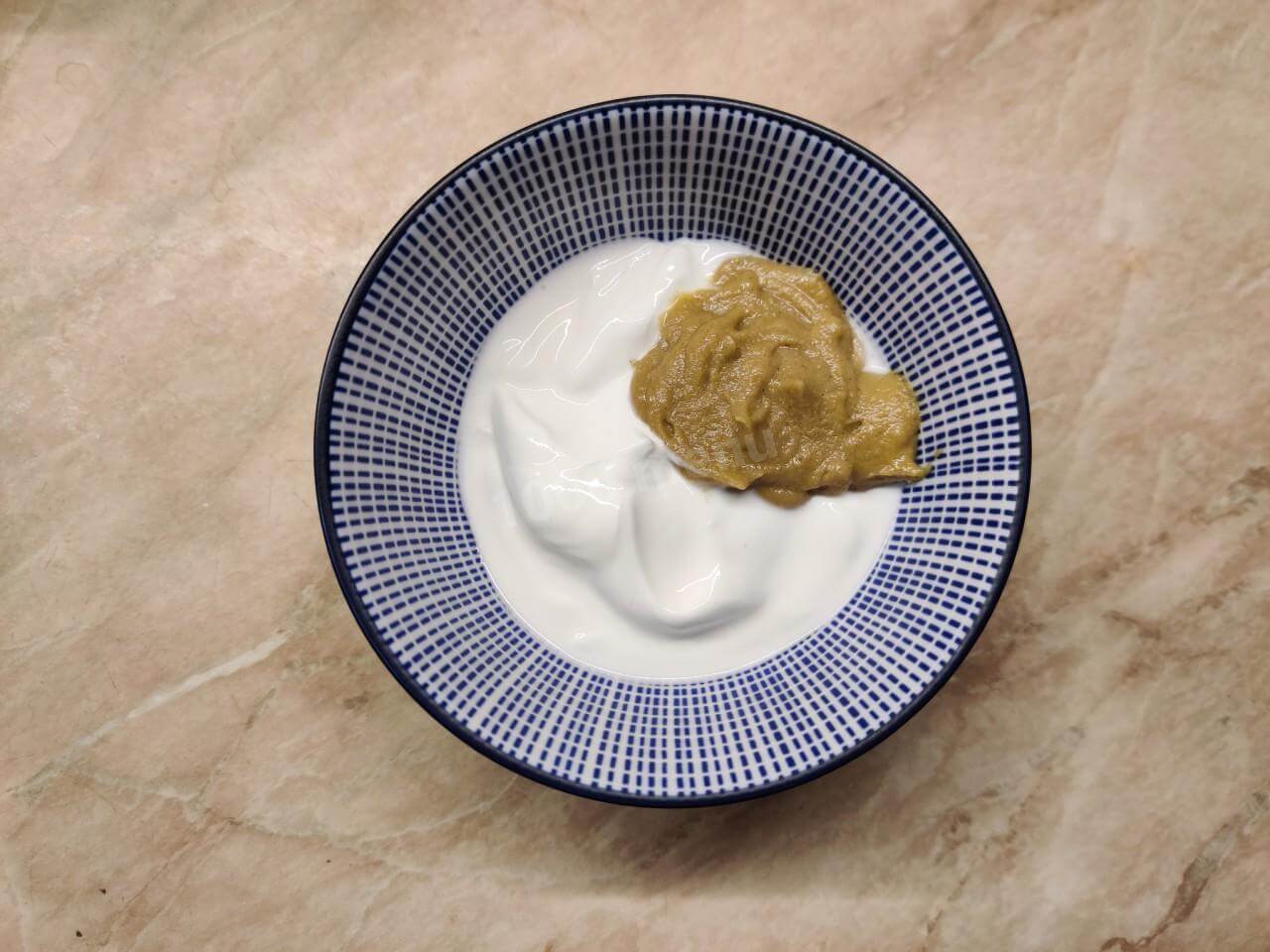 5.Для приготування сметанно-гірчичного соусу густу сметану (20-30%) – 250 г змішайте з неповною чайною ложкою гірчиці. Можете додати зубчик часнику, пропущений через прес.