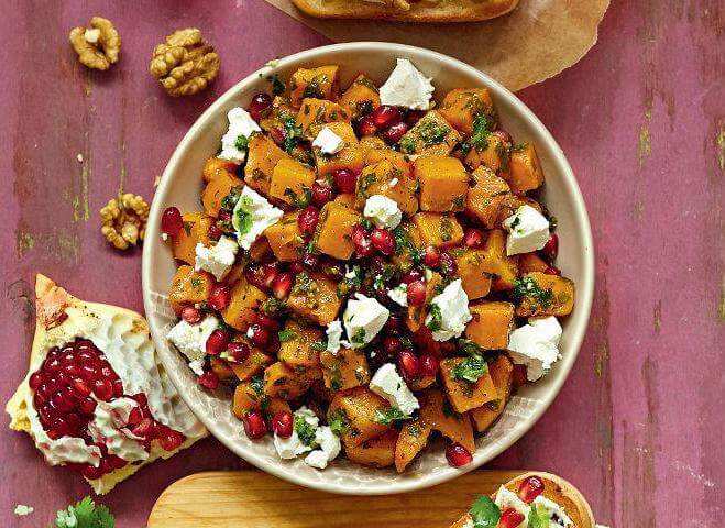Теплый картофельный салат с фетой и гранатом