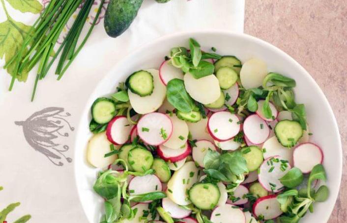 Готовим весенний салат из молодой картошки с редисом и огурцами