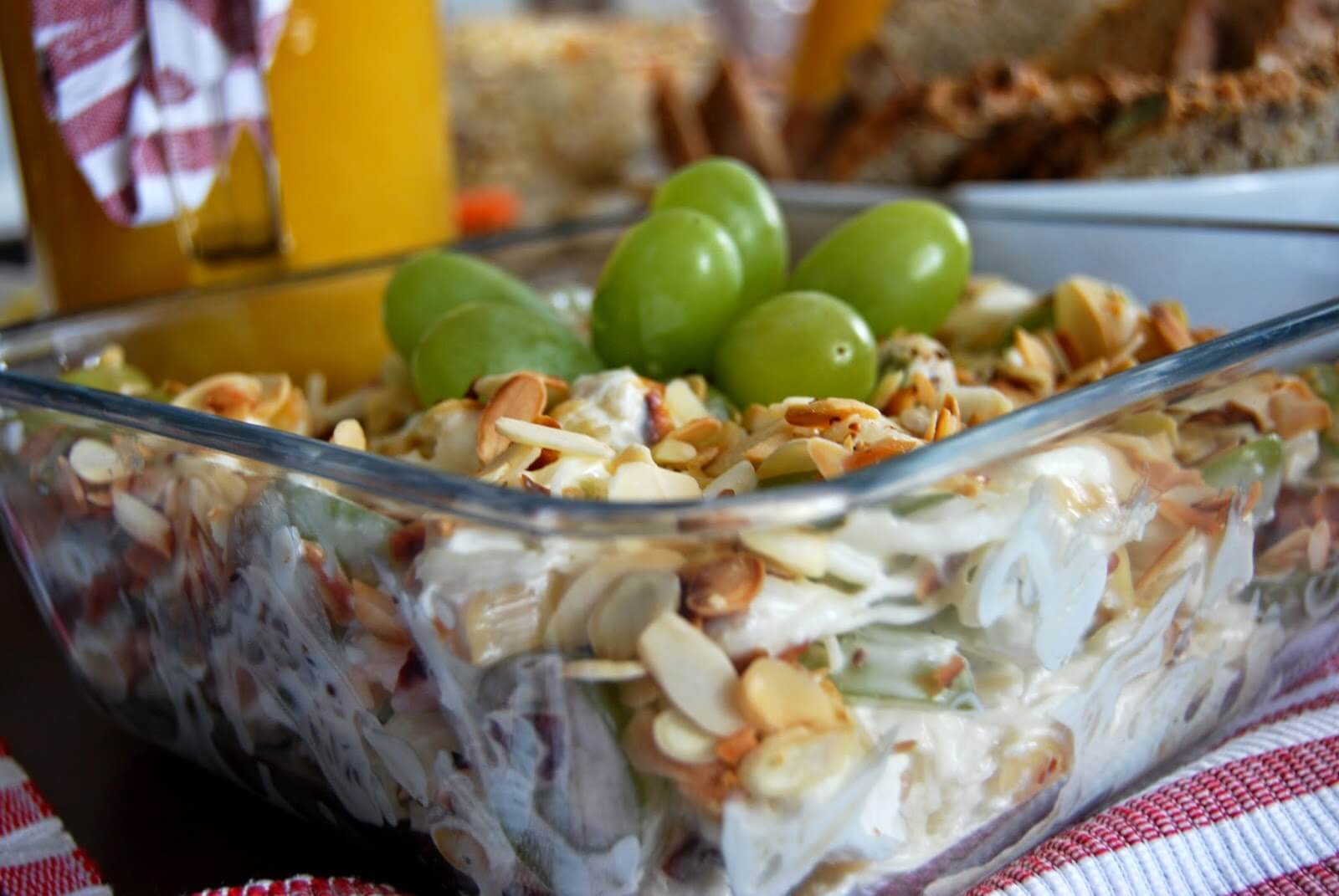 6.Салат из сельдерея с фетой, виноградом и миндалем – это восхитительное сочетание сладости твердого, зеленого винограда, сочного сельдерея, соленой феты, пикантной остроты чеснока и хрустящего миндаля.