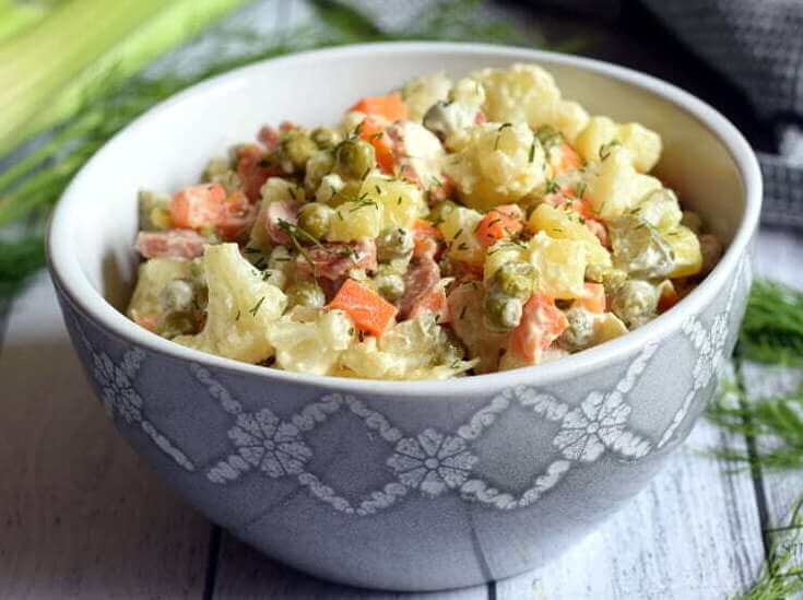 6.Готовый салат из цветной капусты и картофеля с сосисками можно подавать на завтрак, ужин, в дополнение к обеду, взять на пикник или на работу.