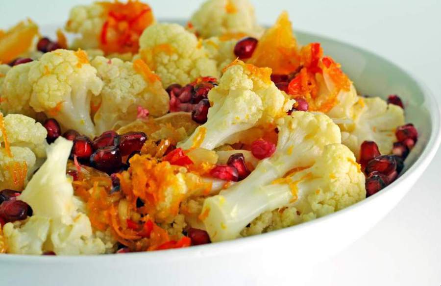Готовим салат из цветной капусты с гранатом и апельсинами