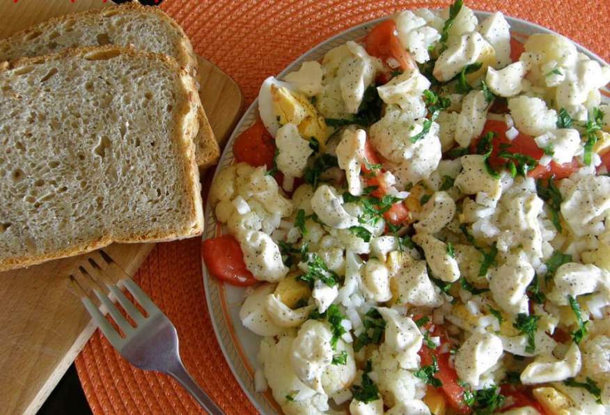 7. Салат из цветной капусты с соусом тартар готов. Лучше подавать его полностью остывшим.