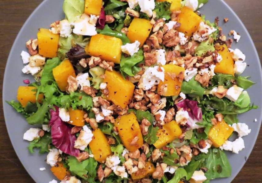 6. Салат из печеной тыквы с козьим сыром подавайте как самостоятельную закуску или в дополнение к основному мясному блюду.