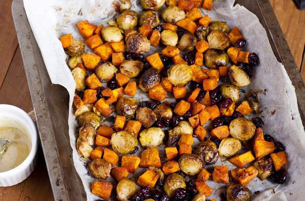 5. В процессе запекания один-два раза перемешайте овощи, чтобы они готовились равномерно со всех сторон. В конце готовки добавьте сушеную клюкву.