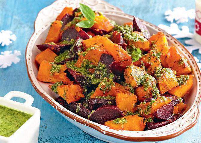 Готовим теплый салат из тыквы со свёклой под соусом песто