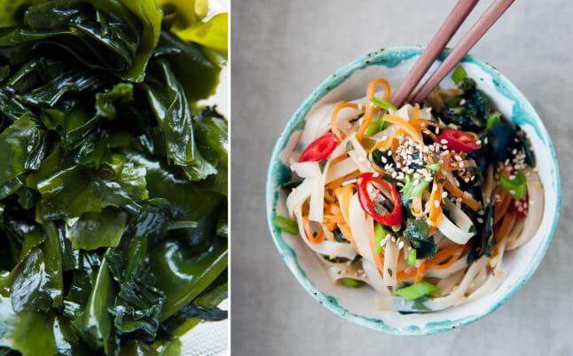 Если вы не прочь познакомить семью или друзей с японской кухней, начните с очень вкусного и полезного салата из водорослей вакаме с рисовой лапшой и овощами, богатого йодом и витамином С. Сушеные водоросли и рисовую лапшу можно приобрести в японских супермаркетах или в специальных отделах магазинов.