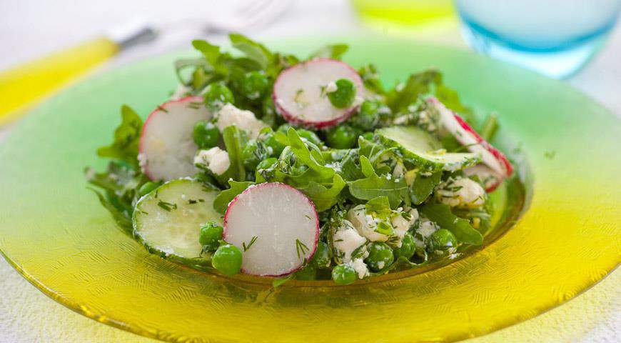 9. Салат из зеленого горошка, редиски и феты пора подавать к столу.