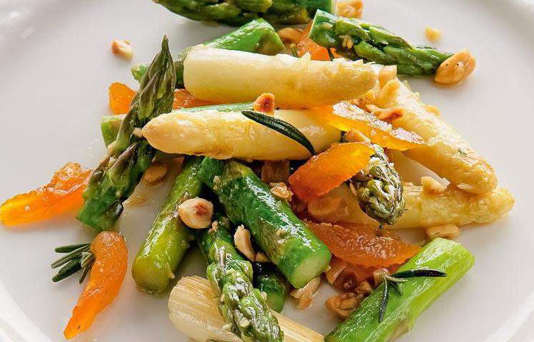 Готовим теплый салат из спаржи с курагой