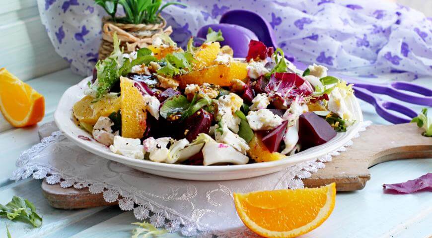 Если вы любите свёклу в закусочных блюдах, не стоит останавливаться на популярном винегрете и сельди под шубой. Из этого корнеплода можно приготовить множество вкусных и полезных блюд. Предлагаем вашему вниманию отличный рецепт салата из свёклы с апельсином и твердым сыром для будней и праздников.