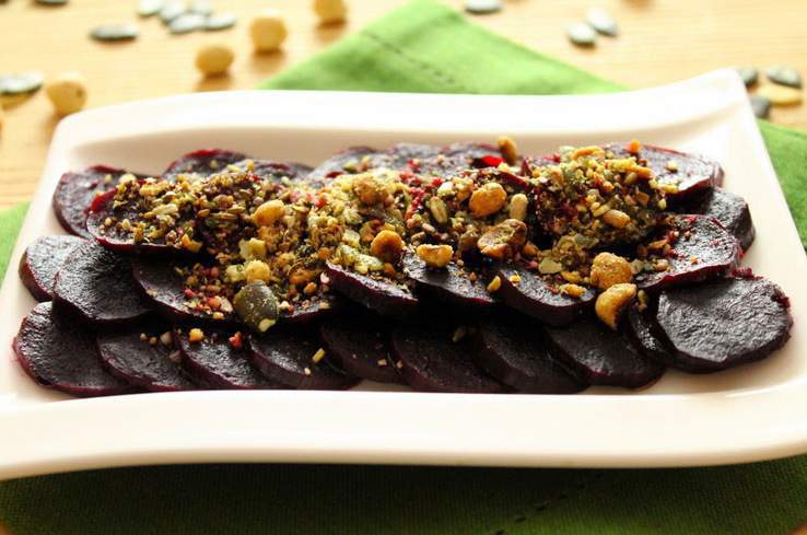 10. Салат из запеченной свёклы с приправой дукка подавайте как самостоятельную закуску или в дополнение к другим блюдам.