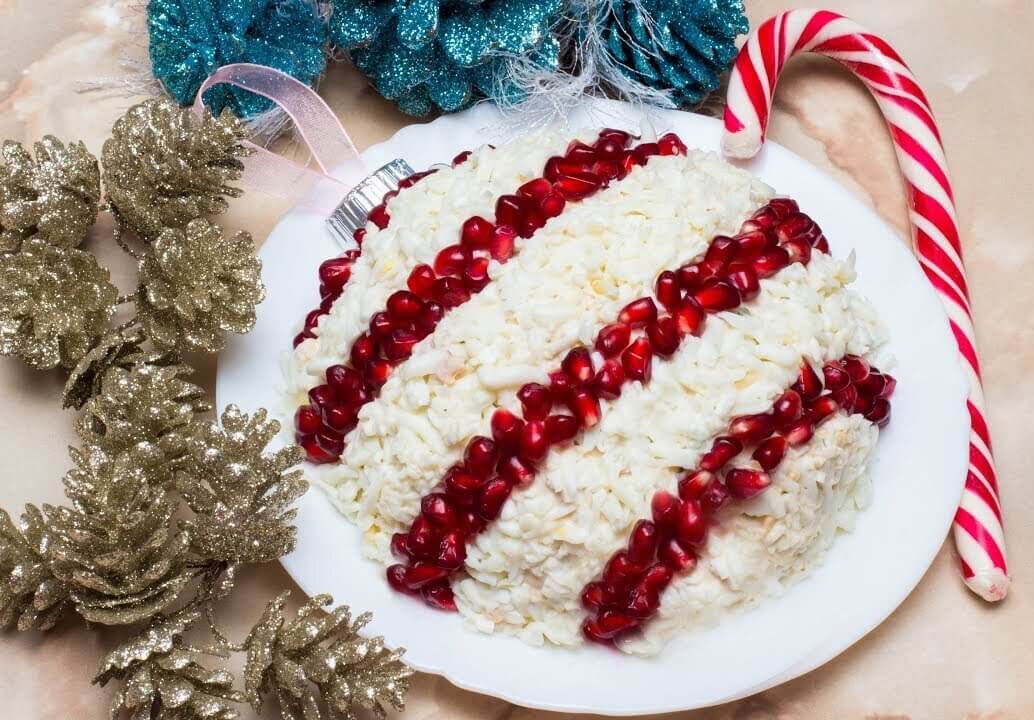 У новогоднего праздника стойкие ассоциации с нарядной елкой, поэтому популярным будет оформление блюд в виде елочных игрушек – шаров, шишек, снеговиков. Самый простой салат в виде ёлочной игрушки будет выгодно выделяться на столе. Предлагаем рецепт праздничного салата «Ёлочная игрушка» с ветчиной.