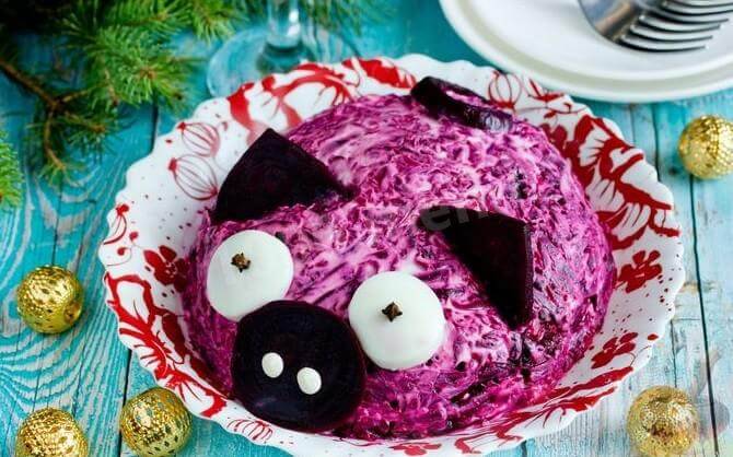 Если вы любите этот популярный салат с селедкой в главной роли, то узнаете его и в обличии симпатичной хрюшки, символом которой знаменуется год. Предлагаем вашему вниманию рецепт салата «Сельдь под шубой» в Год Свиньи, который будет очень актуальным на новогодних и рождественских зимних праздниках.