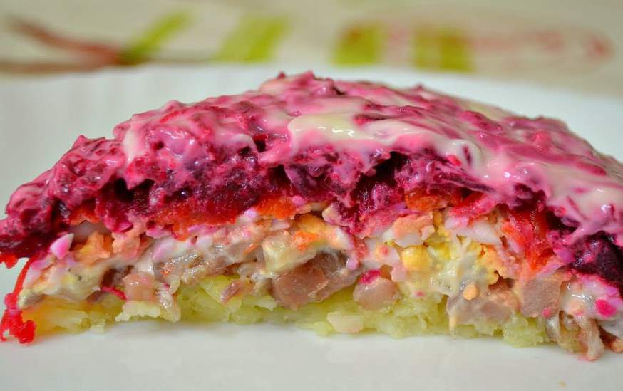 10. Отправьте селедку под шубой в холодильник для настаивания.
