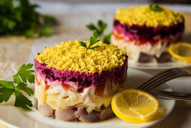 7. Поставьте селедку под шубой без майонеза в холодильник как минимум на 1-2 часа, а затем можете подавать к столу.