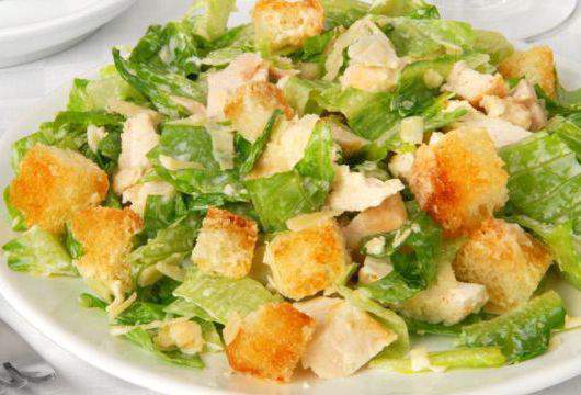 6. Возьмите салатное блюдо и выложите нижним слоем порезанные листья салата, а поверх салата разложите куриную грудку.